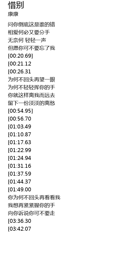 | [02:29.27][00:21.12] | 康晋荣 - 惜别 |