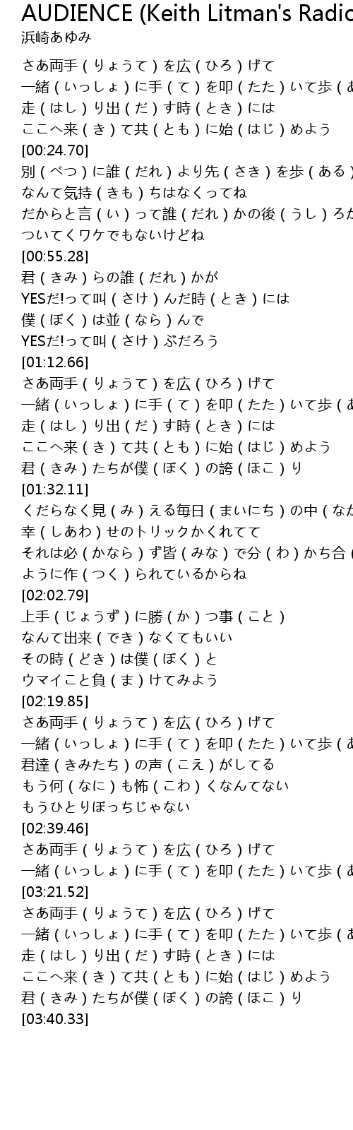 | [03:22.00] | さあ両手(りょうて)を広(ひろ)げて |