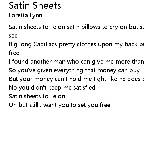 | Satin sheets to lie on satin pillows to cry on but still I'm not happy don't you see | |