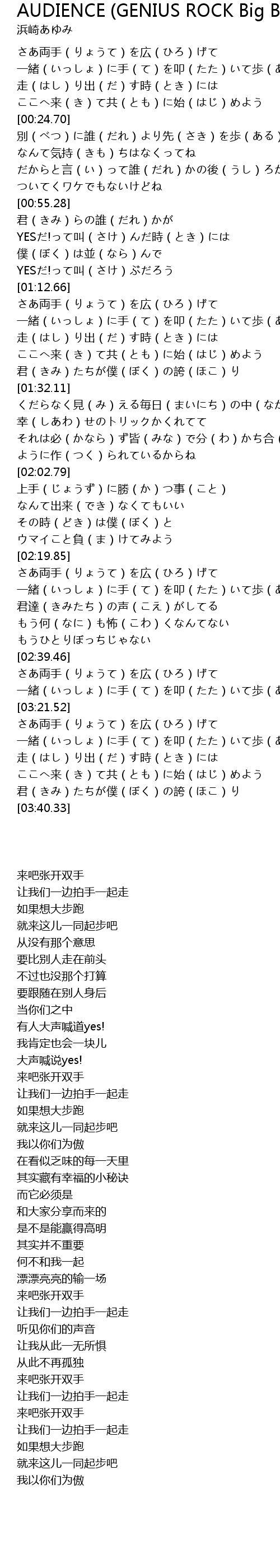 | [02:24.45] | 一緒(いっしょ)に手(て)を叩(たた)いて歩(ある)こう |