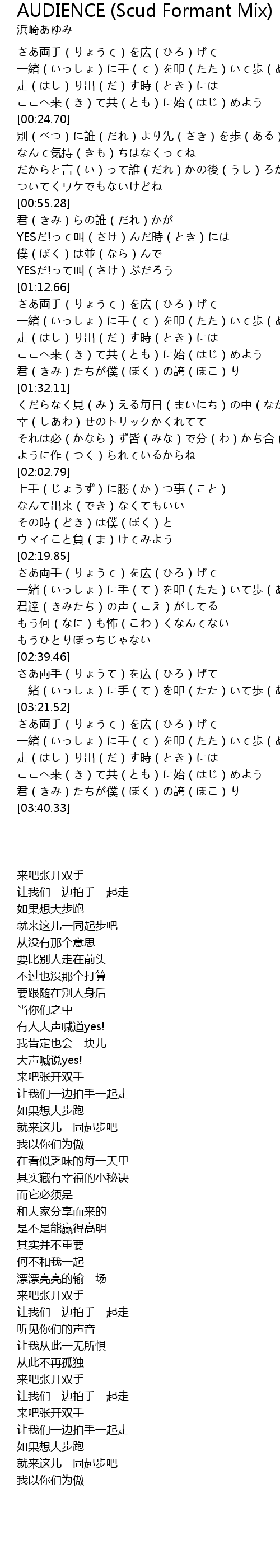 | [02:24.45] | 一緒(いっしょ)に手(て)を叩(たた)いて歩(ある)こう |
