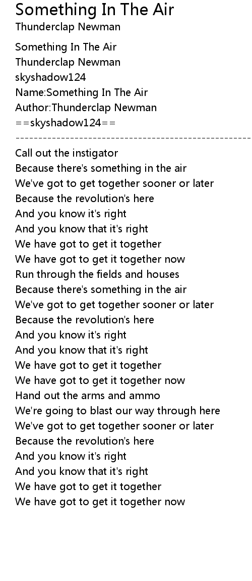 Something In The Air Lyrics