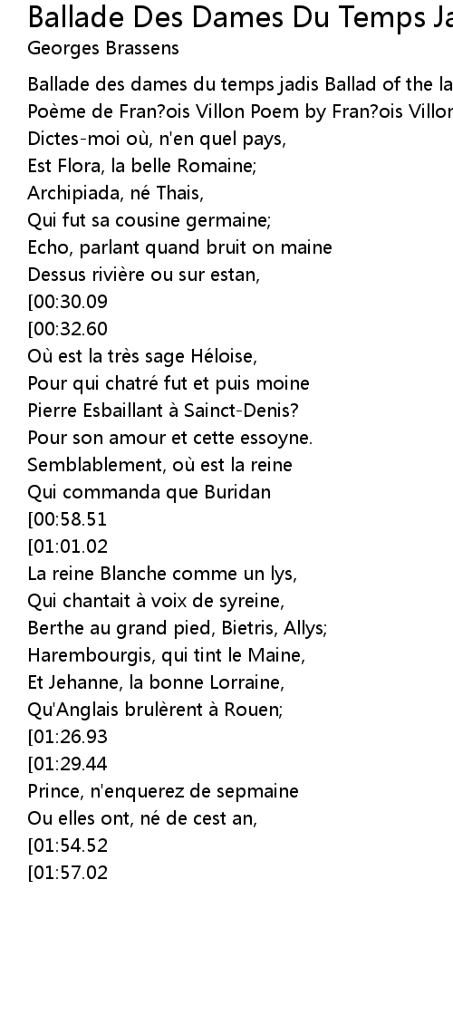 | [00:00.50] | Ballade des dames du temps jadis Ballad of the ladies of old |