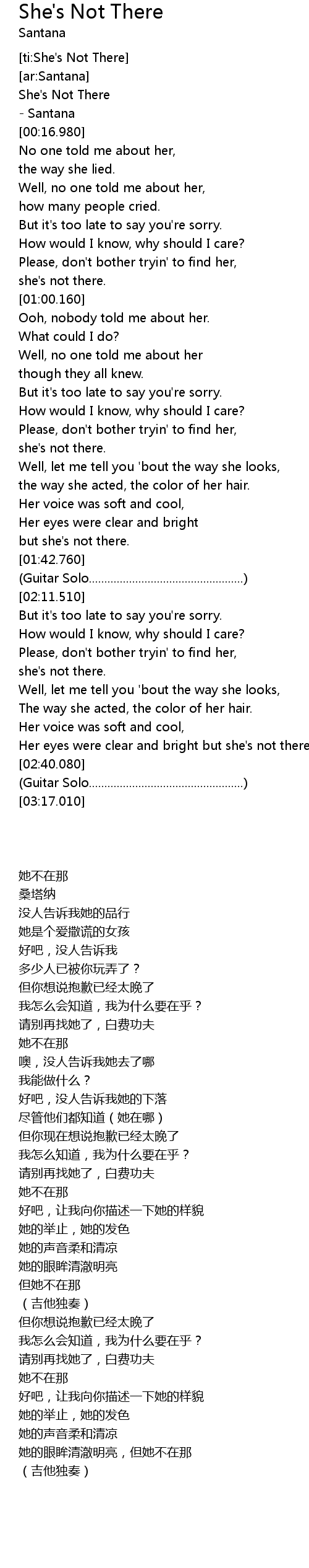 [ti:She's Not There] |