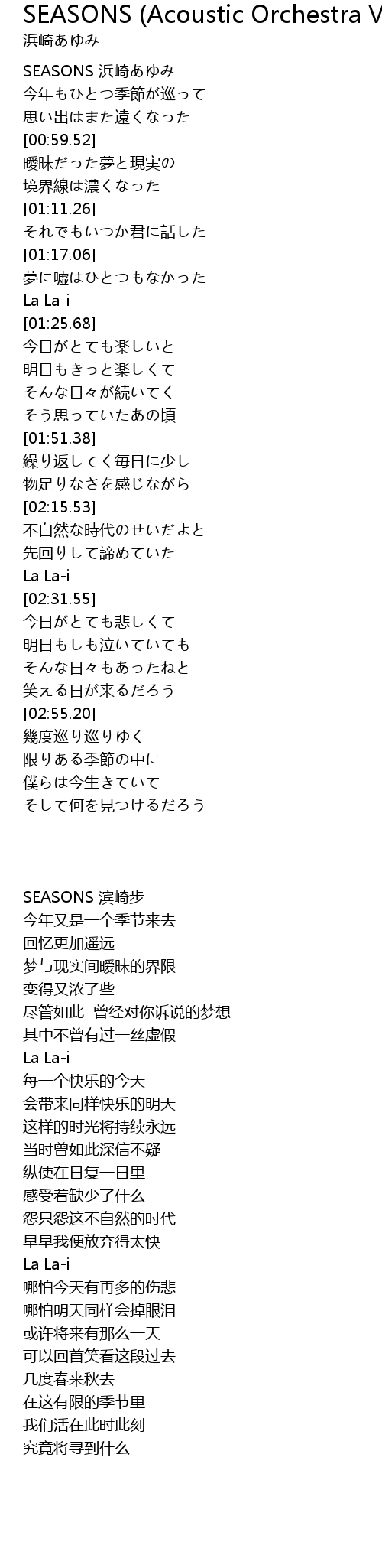 | [00:00.44] | SEASONS 浜崎あゆみ |