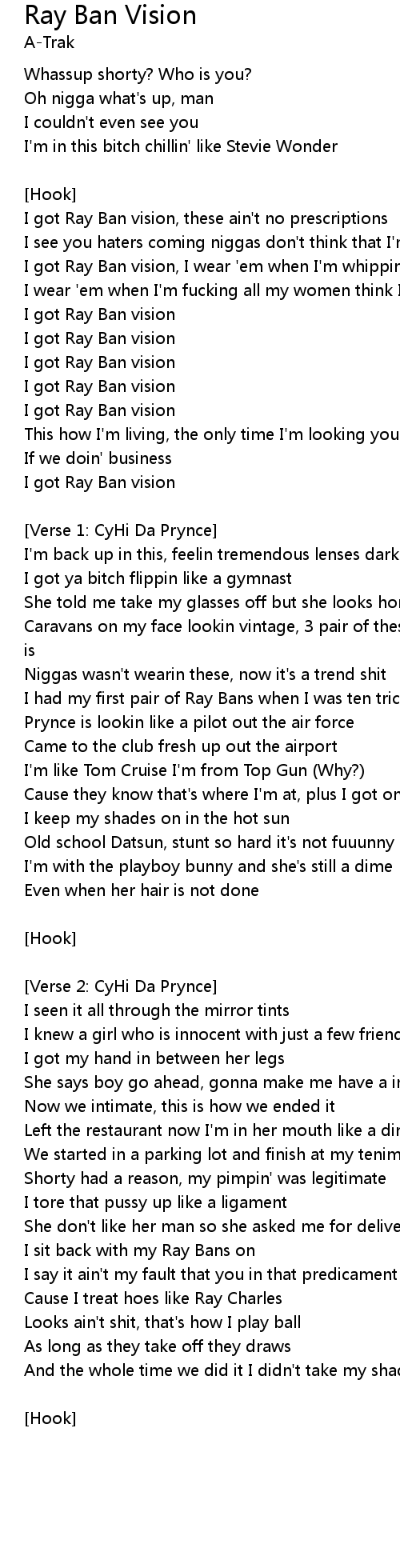 I got Ray Ban vision, I wear 'em when I'm whippin' |