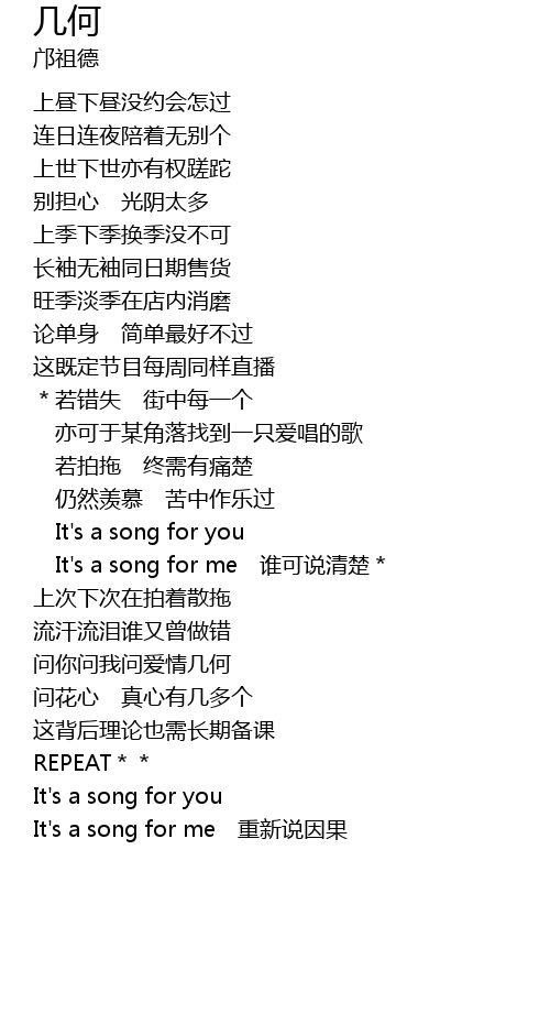 | It's a song for me 谁可说清楚* | |
