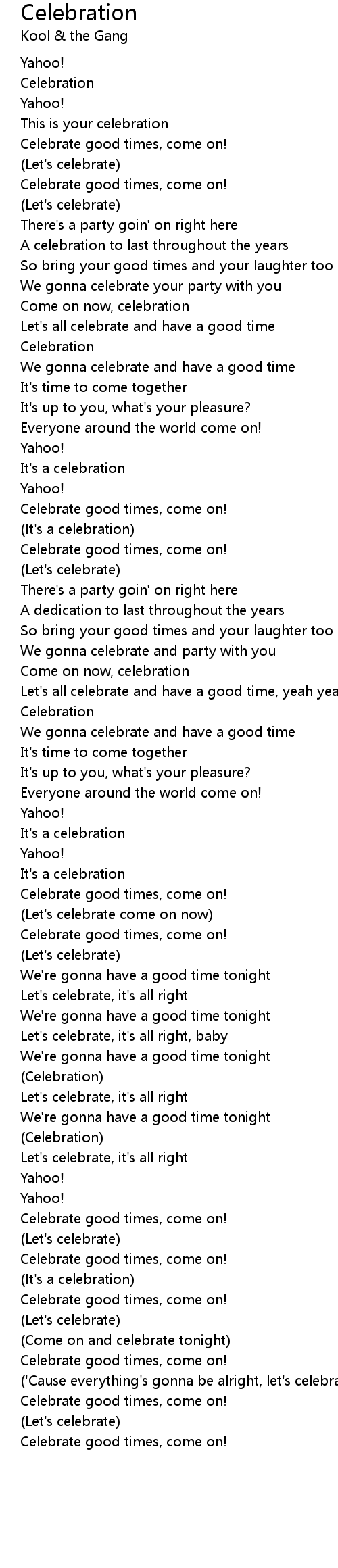 Let's all celebrate and have a good time, yeah yeah