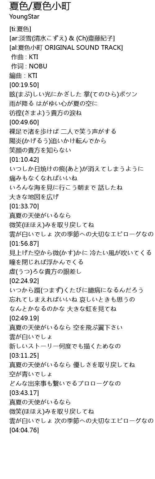 | [03:22.58] | 真夏の天使がいるなら 優しさを取り戻してね |