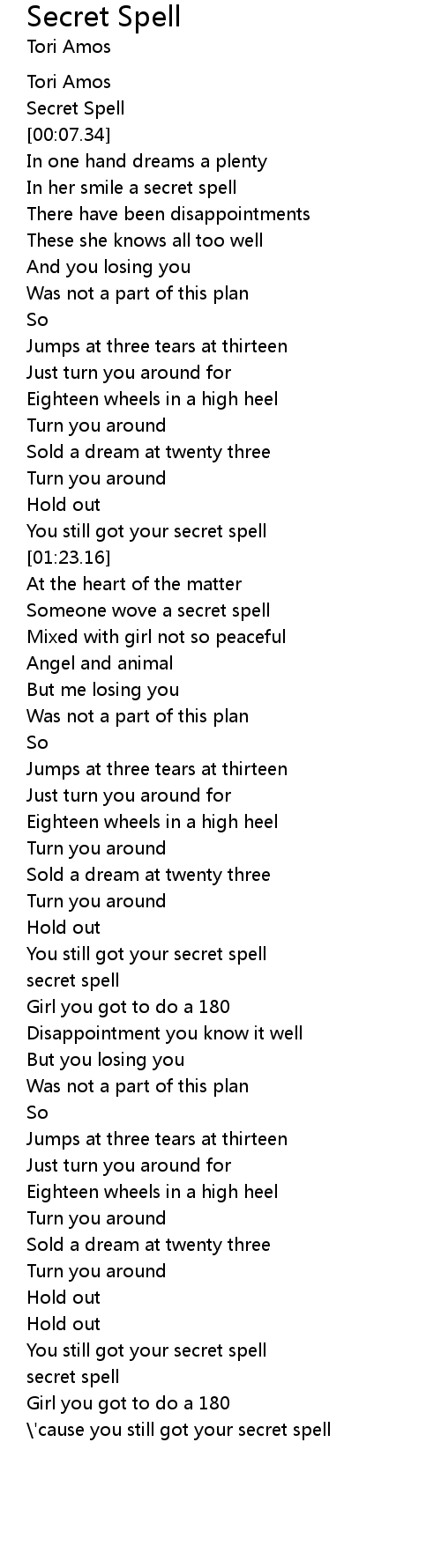 \'cause you still got your secret spell |