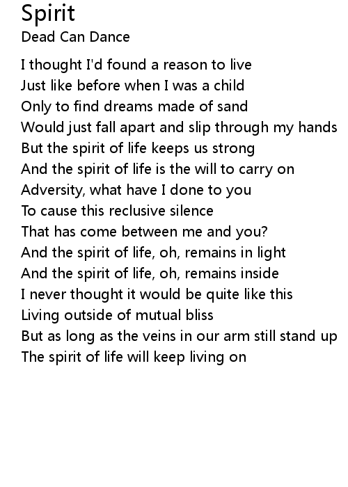 And the spirit of life is the will to carry on |