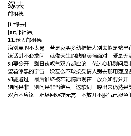 | [03:10.34] | 双方不应该 难堪回避亦无需 不放开不服气已褪色的爱情 必要时缘尽就会 别离 |