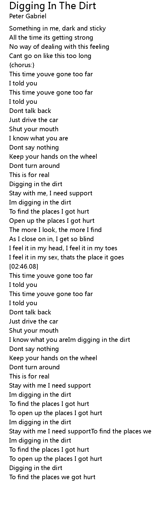 Digging In The Dirt Lyrics