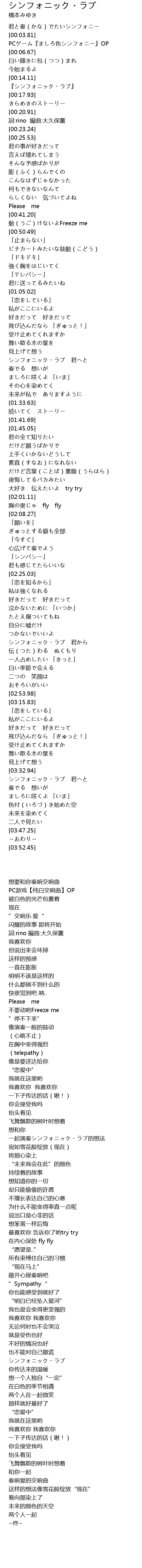 | [03:33.69] | シンフォニック・ラブ 君へと |