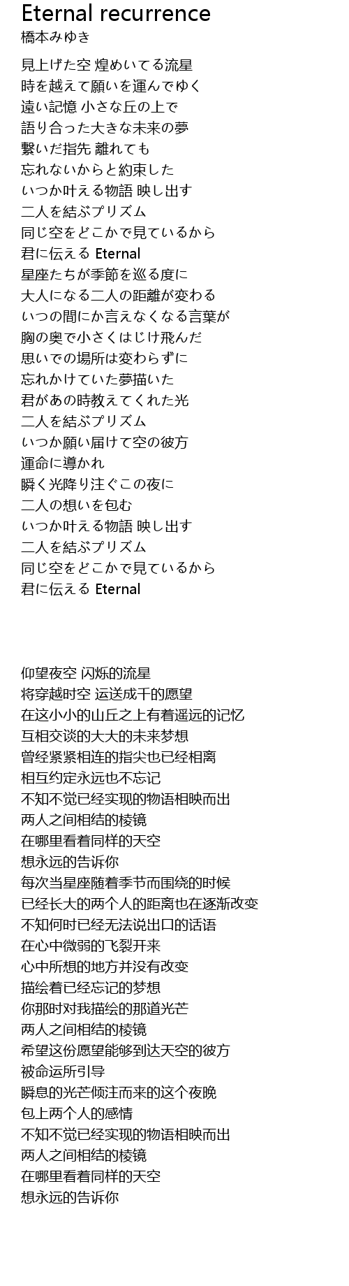 | Song | Eternal recurrence |