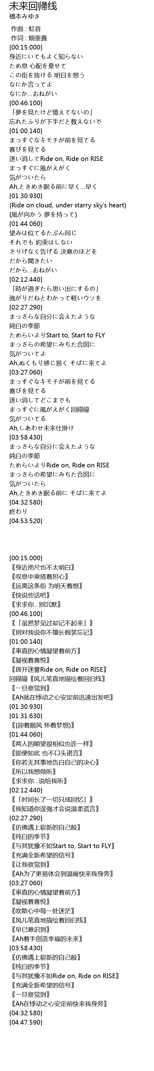 | [03:44.680] | まっすぐに風がえがく回帰線 |