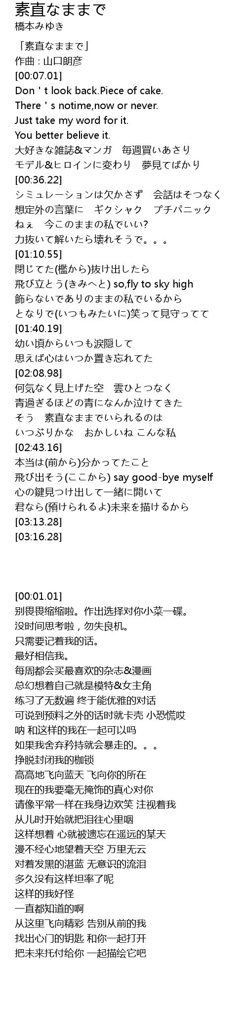 | [01:25.44] | 飾らないでありのままの私でいるから |