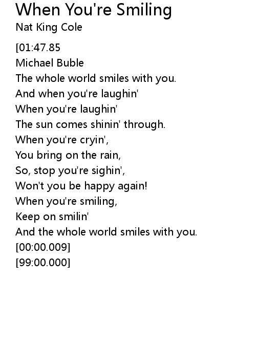 | [01:49.41][01:47.85][00:01.23] | When you're smilin' |