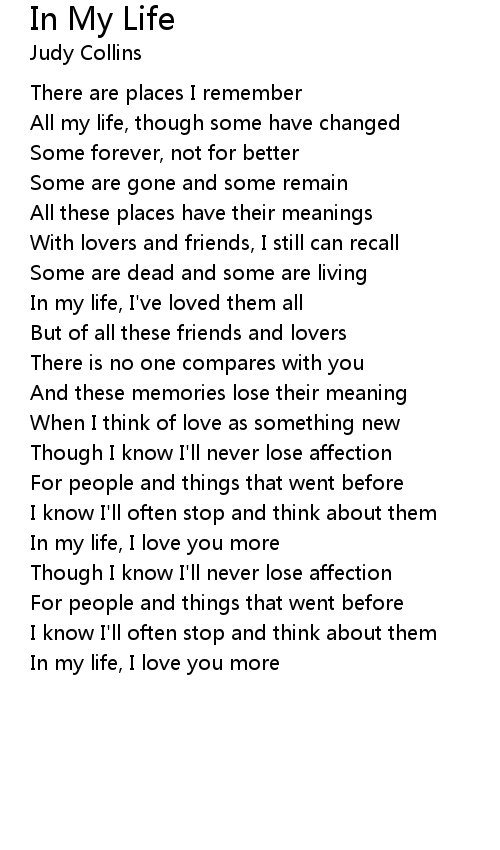 In my life, I love you more |