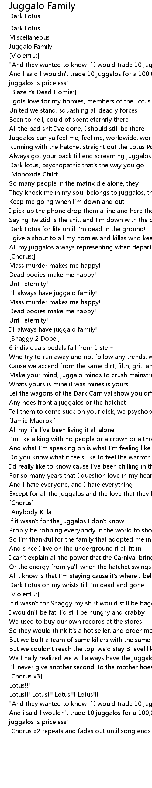 "And they wanted to know if I would trade 10 juggalos for a 100 main stream fans And I said I wouldn't trade 10 juggalos for a 100,000 mainstream fans 10 juggalos is priceless" |