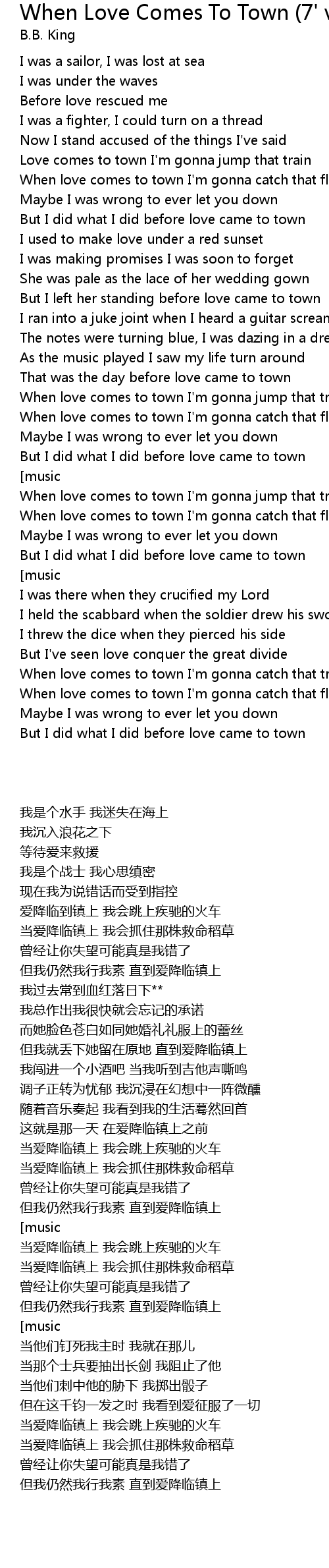 When love comes to town I'm gonna jump that train |
