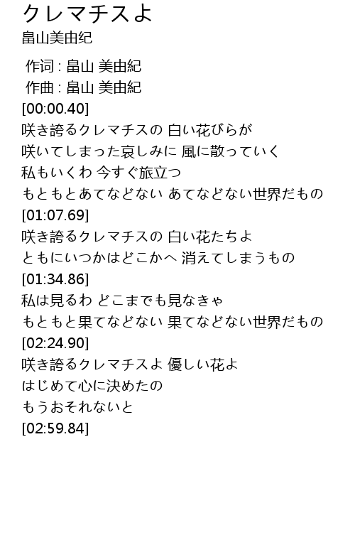 | [02:31.04] | 咲き誇るクレマチスよ 優しい花よ |