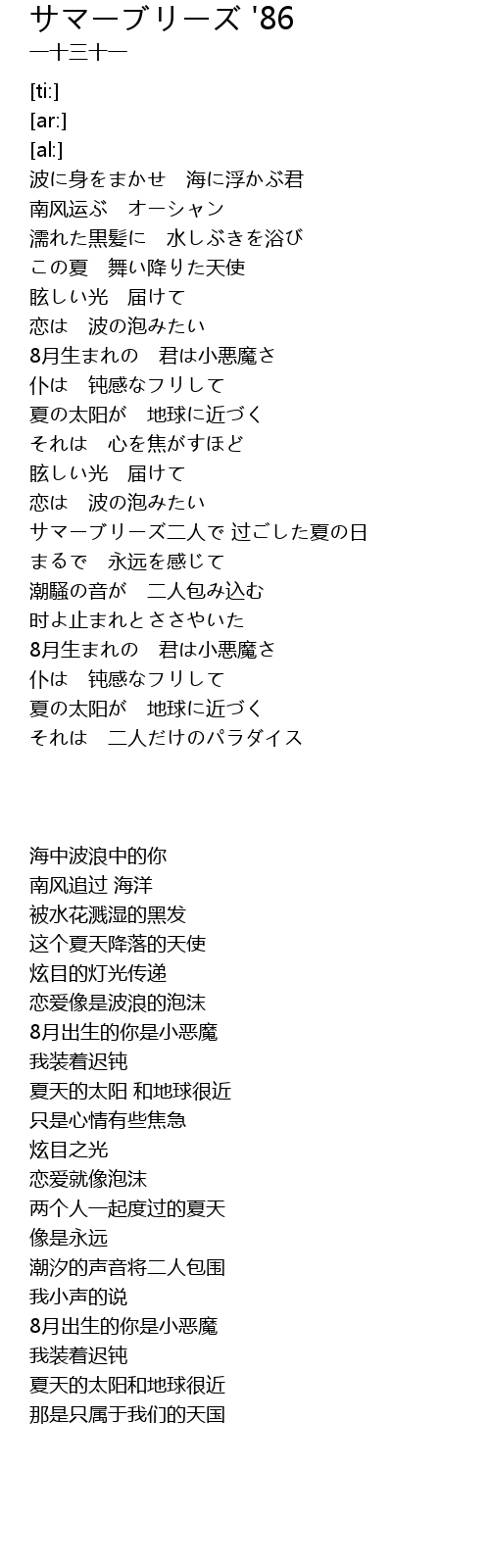 | [03:07.84] | サマーブリーズ二人で 过ごした夏の日 |