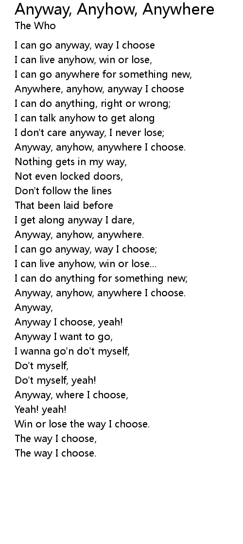Anyway, Anyhow, Anywhere Lyrics