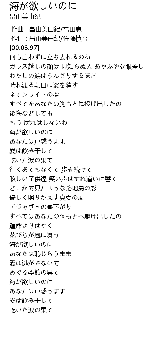 | [00:01.000] | 作词 : 畠山美由紀/佐藤慎吾 |