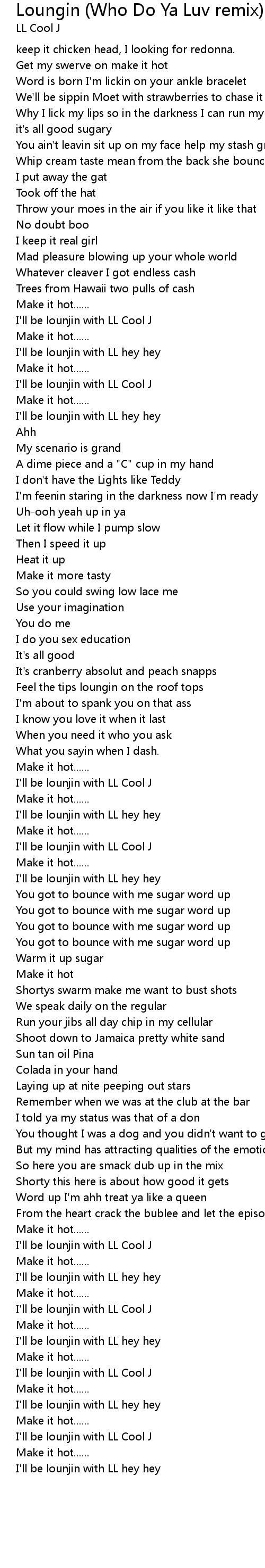 | I'll be lounjin with LL hey hey | |