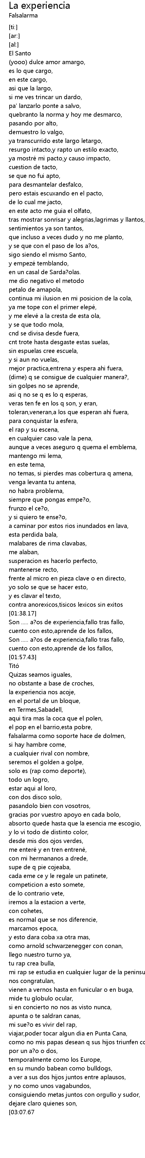 | [01:40.10] | Son ..... a? os de experiencia, fallo tras fallo, |