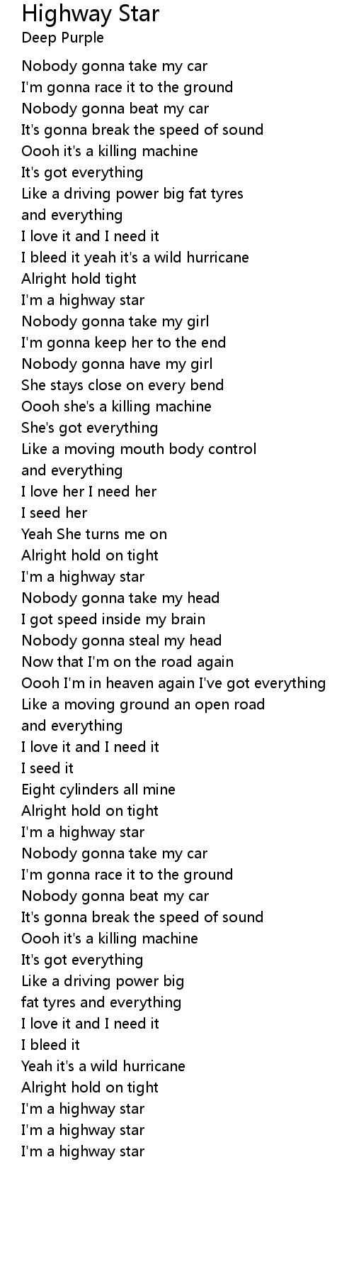 I'm a highway star |