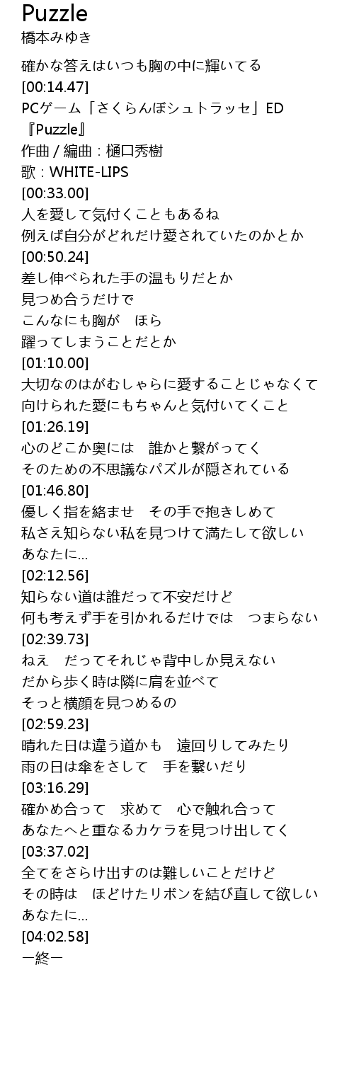| [00:20.27] | 『Puzzle』 |