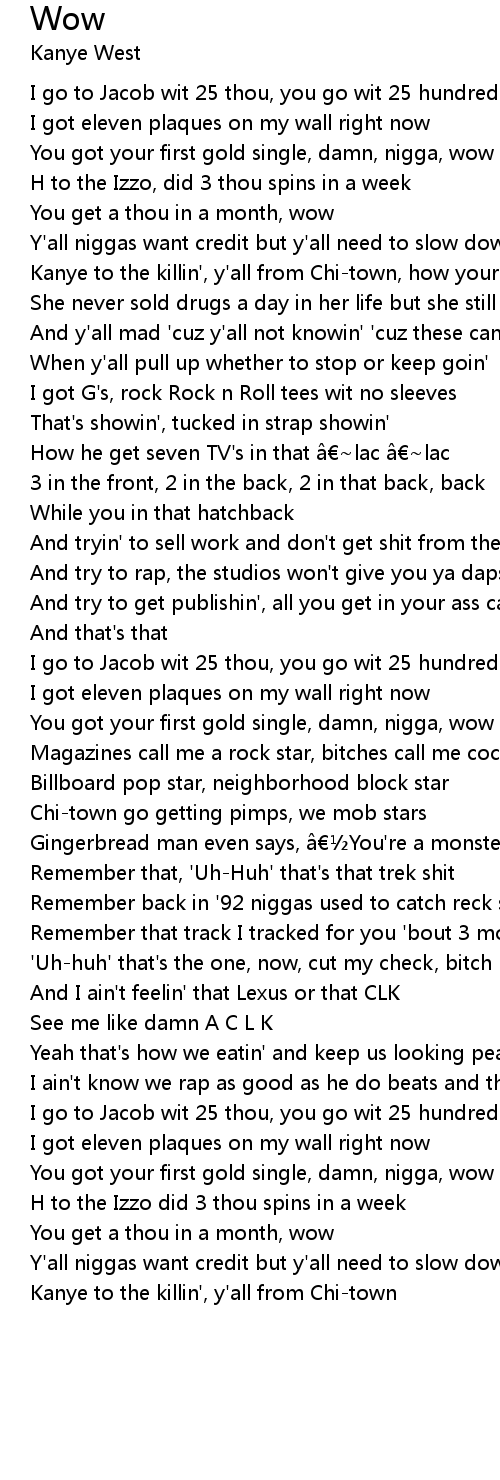 | Kanye to the killin', y'all from Chi-town, how your wife gon' say | |
