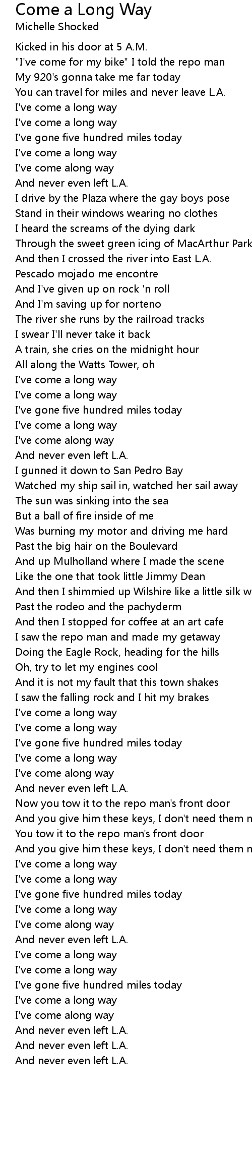 I've gone five hundred miles today |