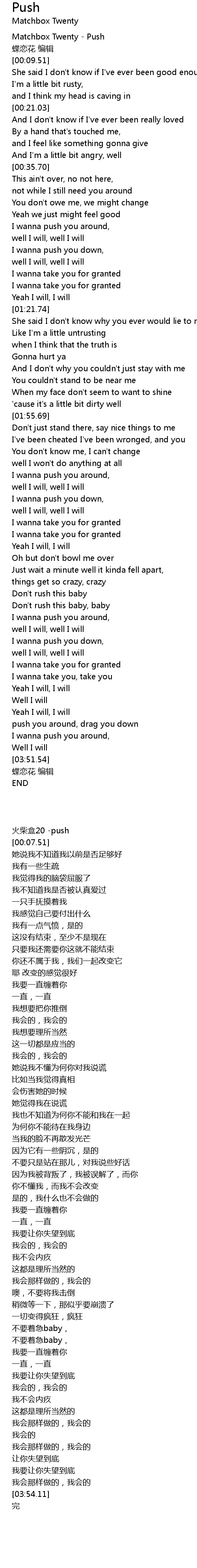 | [01:56.25] | Don't just stand there, say nice things to me |