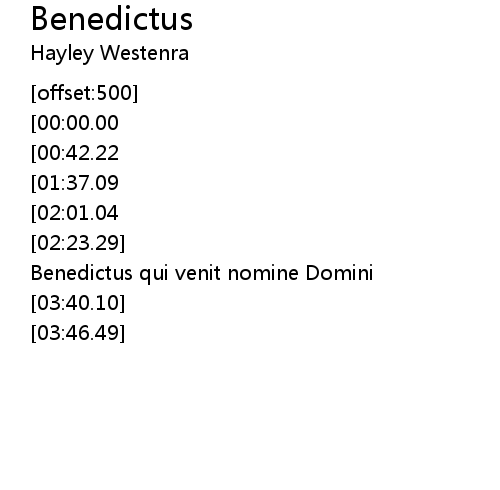 | [02:31.47] | Benedictus qui venit nomine Domini |