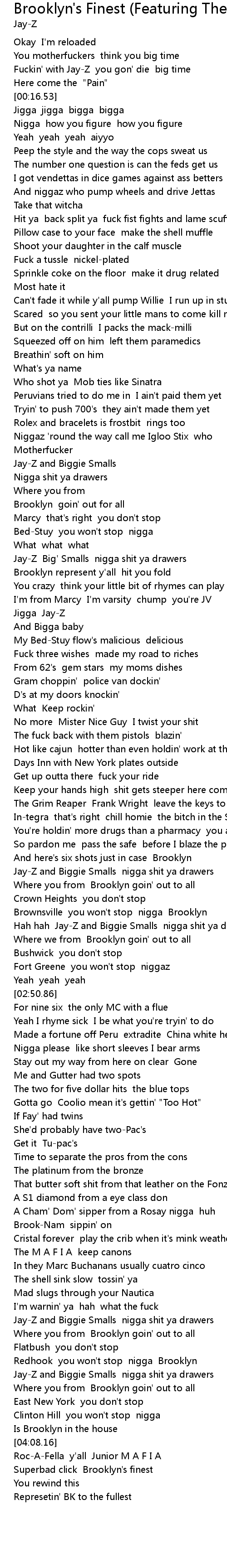Jay-Z Big' Smalls nigga shit ya drawers |