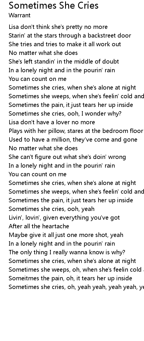 Sometimes she cries, oh, yeah yeah, yeah yeah, yeah |