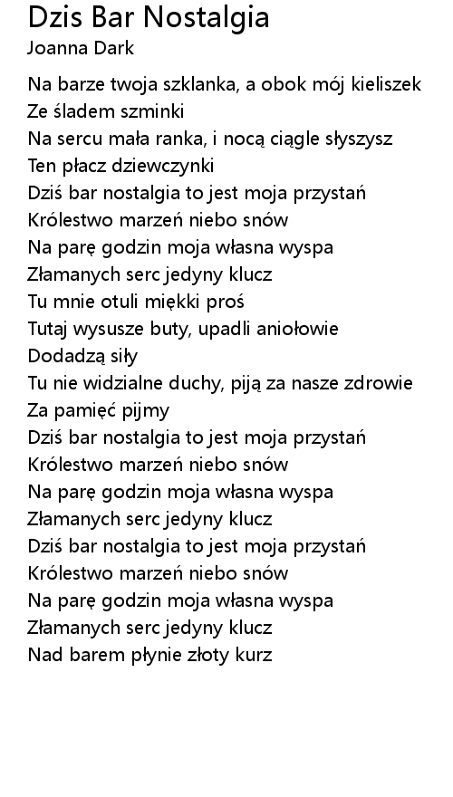 | [00:38.00] | Dziś bar nostalgia to jest moja przystań |
