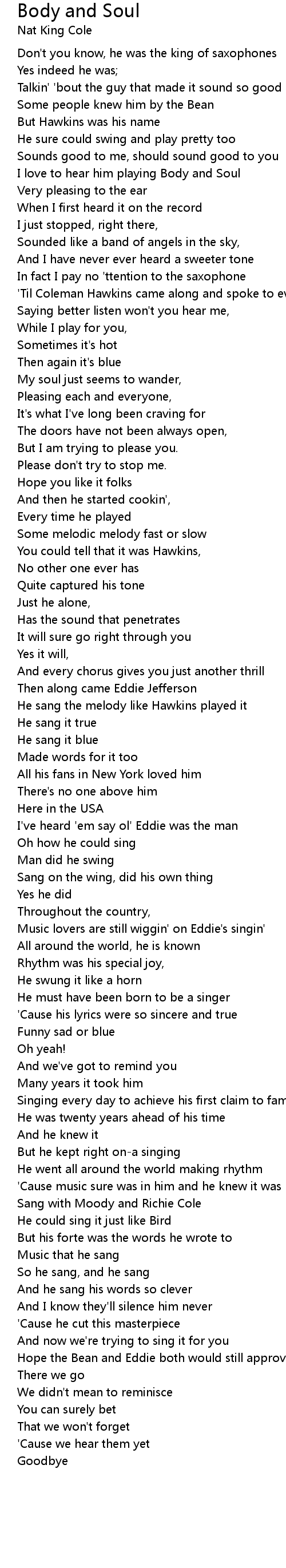 He sang the melody like Hawkins played it |