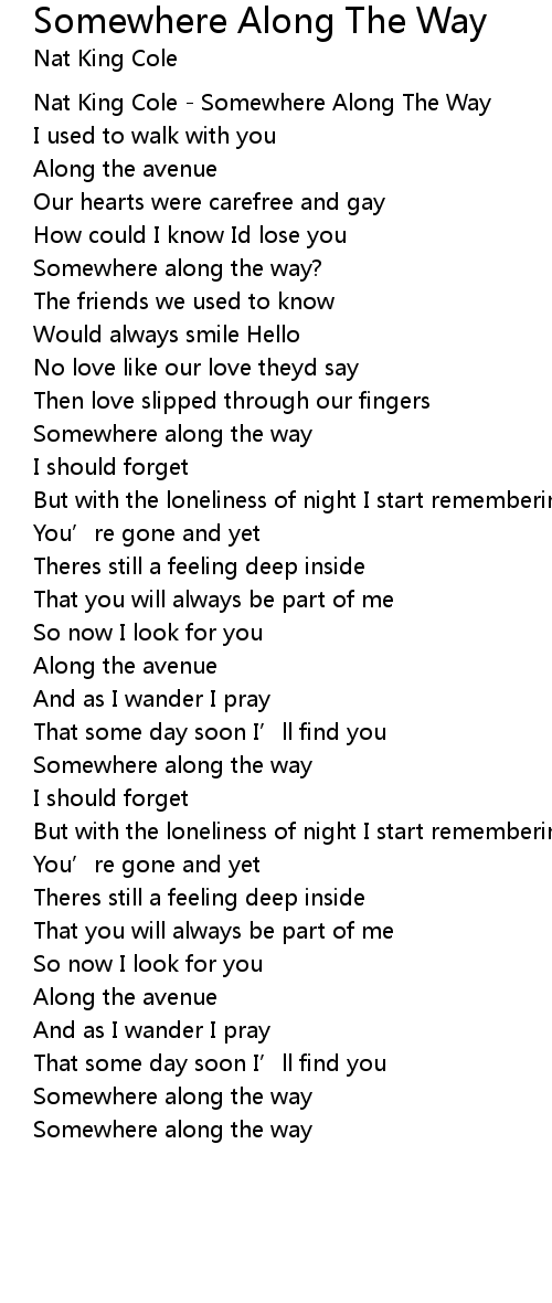 | [00:01.13] | Nat King Cole Somewhere Along The Way |