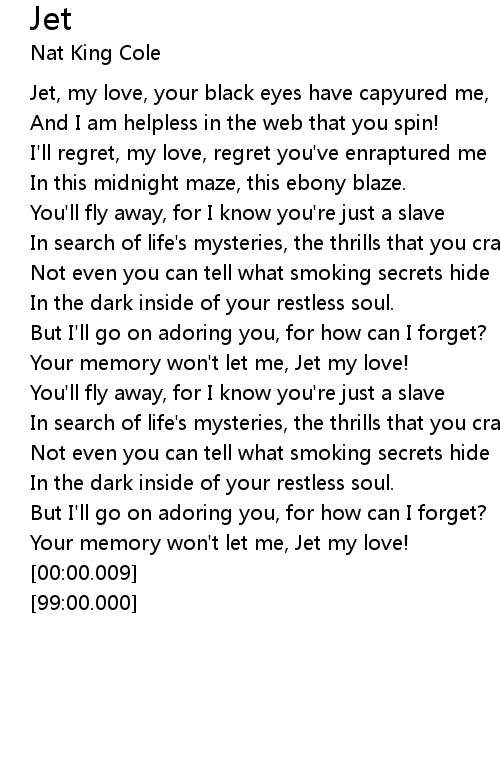 [00:17.42] Jet, my love, your black eyes have capyured me,