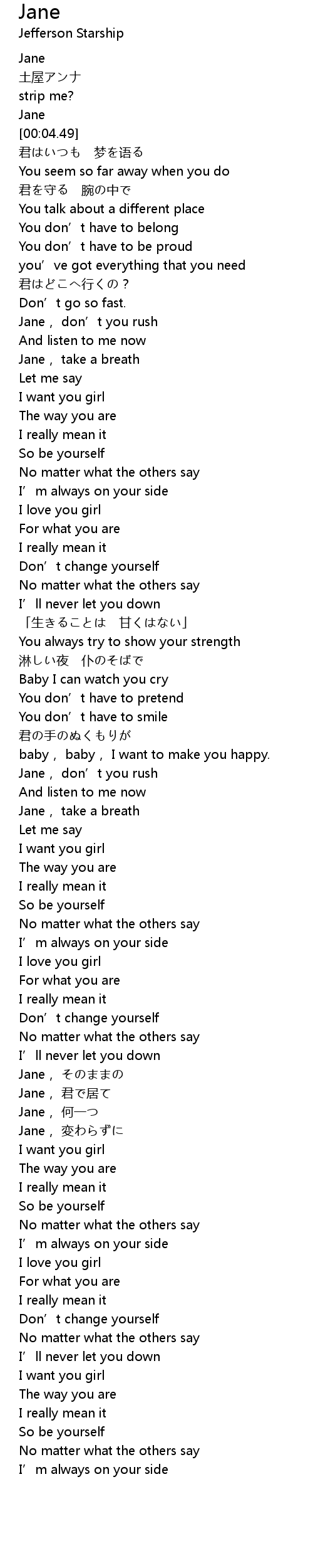 | [01:58.13] | Jane, そのままの |
