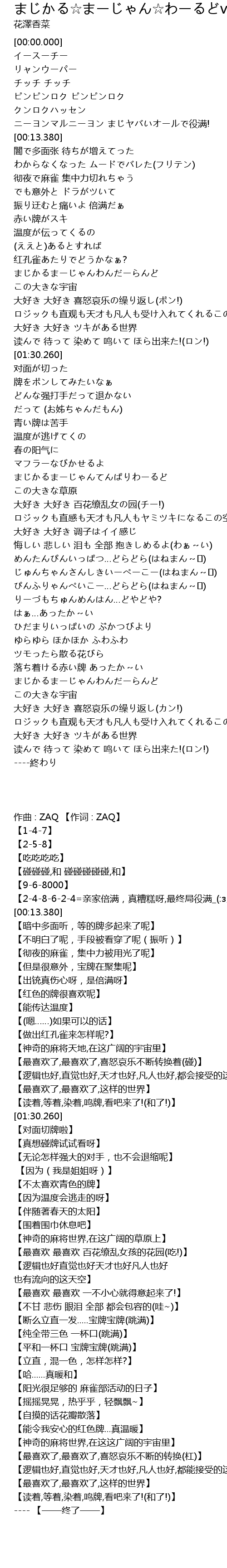 | [03:05.880] | まじかるまーじゃんわんだーらんど この大きな宇宙 |