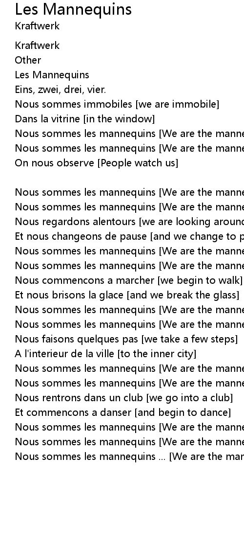 Nous sommes les mannequins [We are the mannequins] |