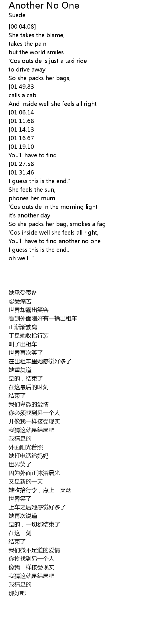 | [02:35.51] | You'll have to find another no one |