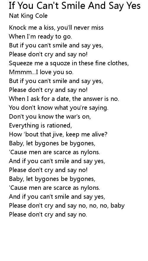 But if you can't smile and say yes, |