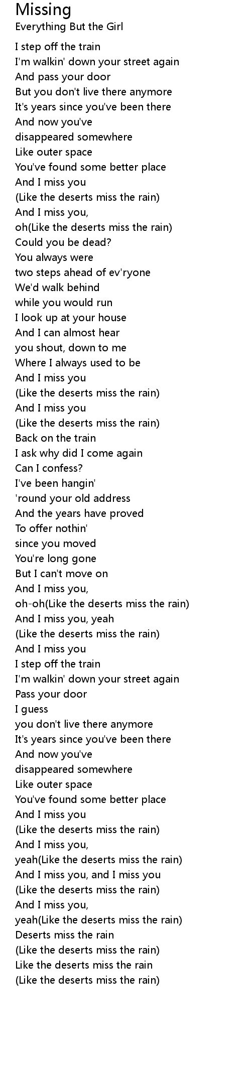And I miss you, and I miss you |