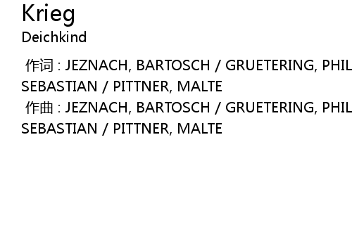 | [00:00.000] | 作词 : JEZNACH, BARTOSCH / GRUETERING, PHILIPP / HACKERT, SEBASTIAN / PITTNER, MALTE |